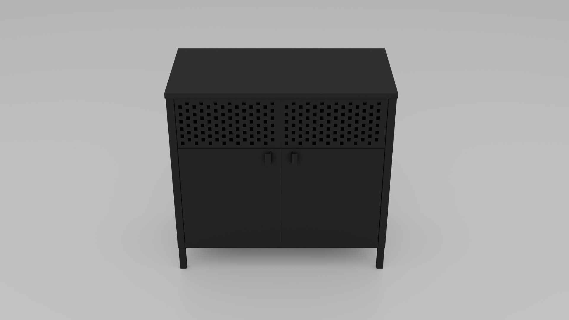 This stylish 3D model showcases a modern storage cabinet in sophisticated matte black. Clean lines and a minimalist design make it the ideal piece of furniture for any style-conscious interior. A practical shelf provides organization and structure inside – perfect for storing everyday items or as a design highlight in modern living spaces.